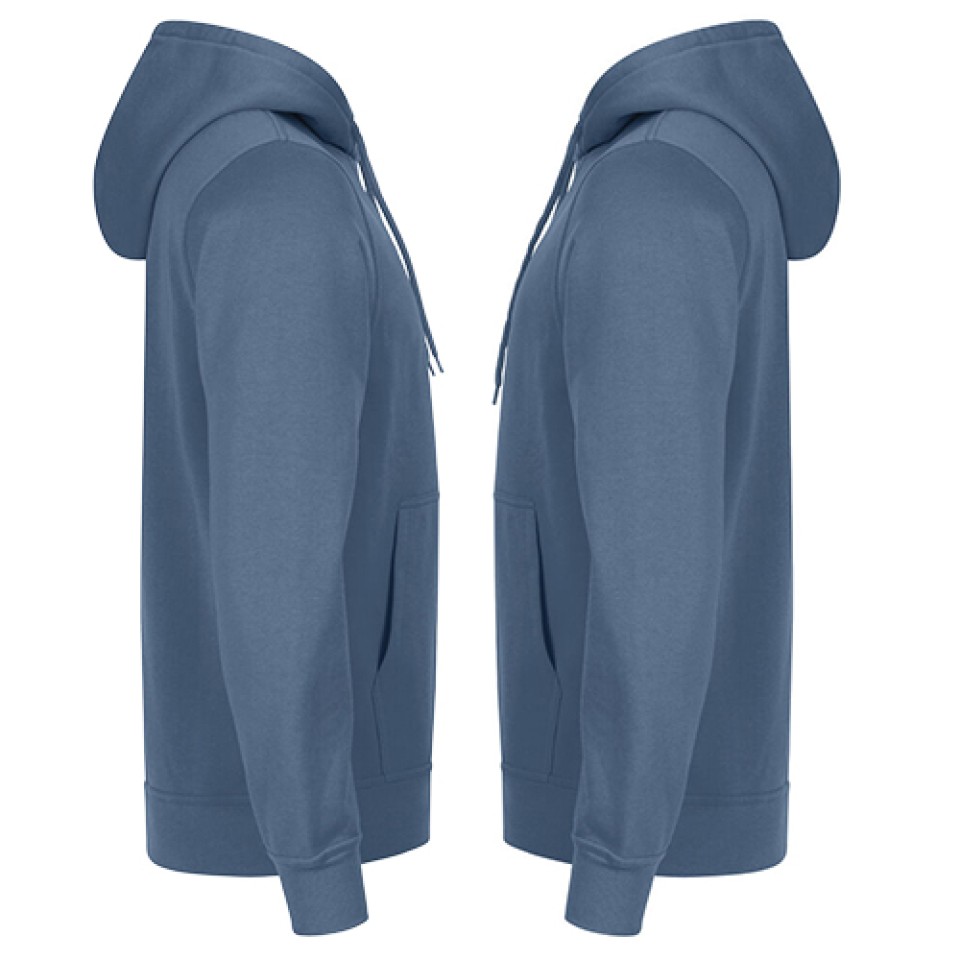 An unisex hoody in our cotton and recycled polyester blend. Hood lining in main fabric and a round cord drawstring. A large kangaroo pocket at front. Brushed inside, cuff and hem in 2x2 rib with double stitching. Reinforced neck tape.