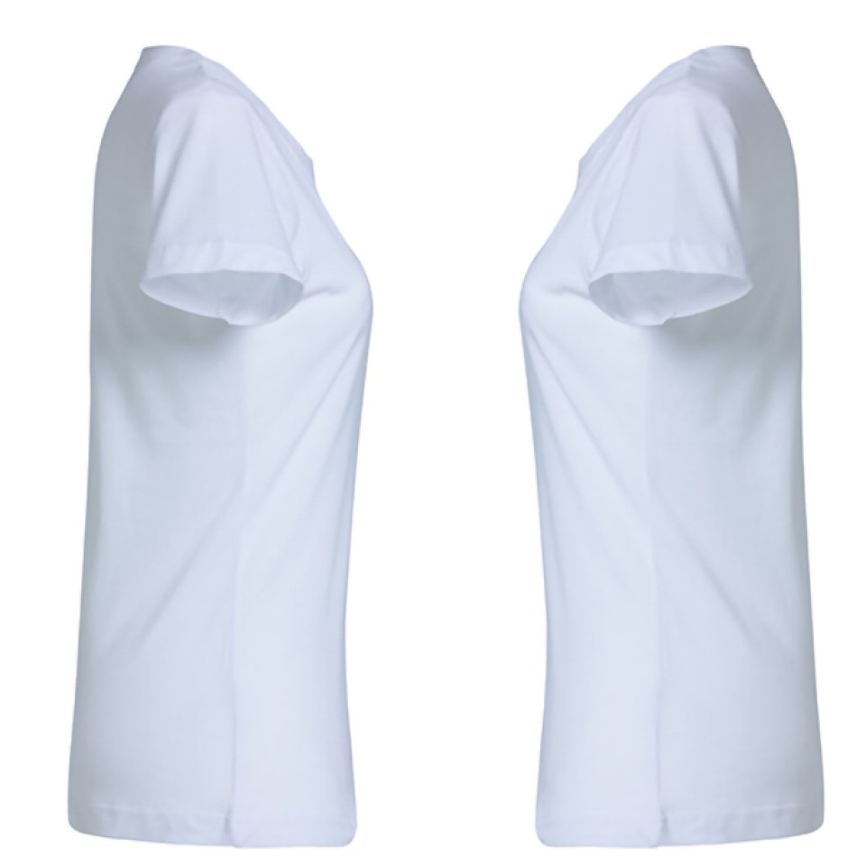 Whilst the men's Basic Tee is round knitted, the ladies has side seams.