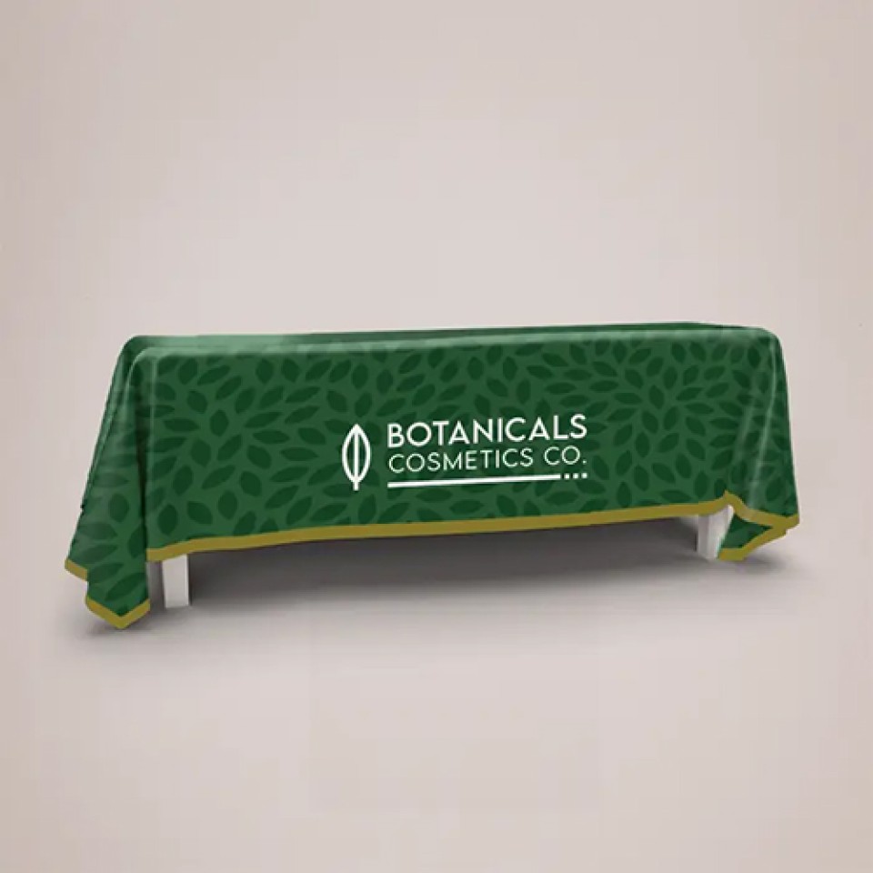 Achieve a seamless, professional look for any event with our full-coverage printed tablecloths. Designed to fit standard and custom table sizes, they drape elegantly to the floor, concealing clutter and creating a polished, unified appearance. Made from durable, easy-care stretch polyester, they feature all-over, high-definition dye-sublimation printing that wraps around edges without seams, ensuring your logo and graphics are displayed with vibrant, fade-resistant clarity. Essential for trade shows, banquet halls, product launches, and retail displays, a custom tablecloth is the most effective way to claim your space and make a powerful, lasting brand impression.
