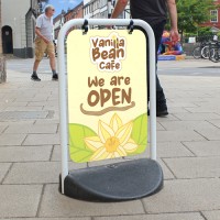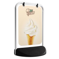 Elevate your shop front advertising with the Compact Eco Swinger. This isn't your average A-board; its innovative design features a graphic panel suspended from a robust tubular frame, allowing it to swing and gently sway to catch the eye of passers-by. The graphic is permanently printed directly onto the aluminium panel, offering exceptional durability and vibrant, fade-resistant colour. Its heavy-duty base provides stability in windy conditions, making it a reliable and charming addition to any boutique, café, or salon entrance.