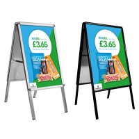 The A master-Lite is your ideal, cost-effective pavement sign for dynamic advertising. Designed for A1 and A2 posters, it features front-opening aluminium snap frames for effortless poster changes. Safety and durability are key, with rounded corners, UV-stable anti-glare covers to protect your graphics, and a hard-wearing satin finish. The smooth galvanized steel back panel is perfect for vinyl messaging. Best of all, its lightweight, fold-flat design makes moving and storing this double-sided display incredibly easy.