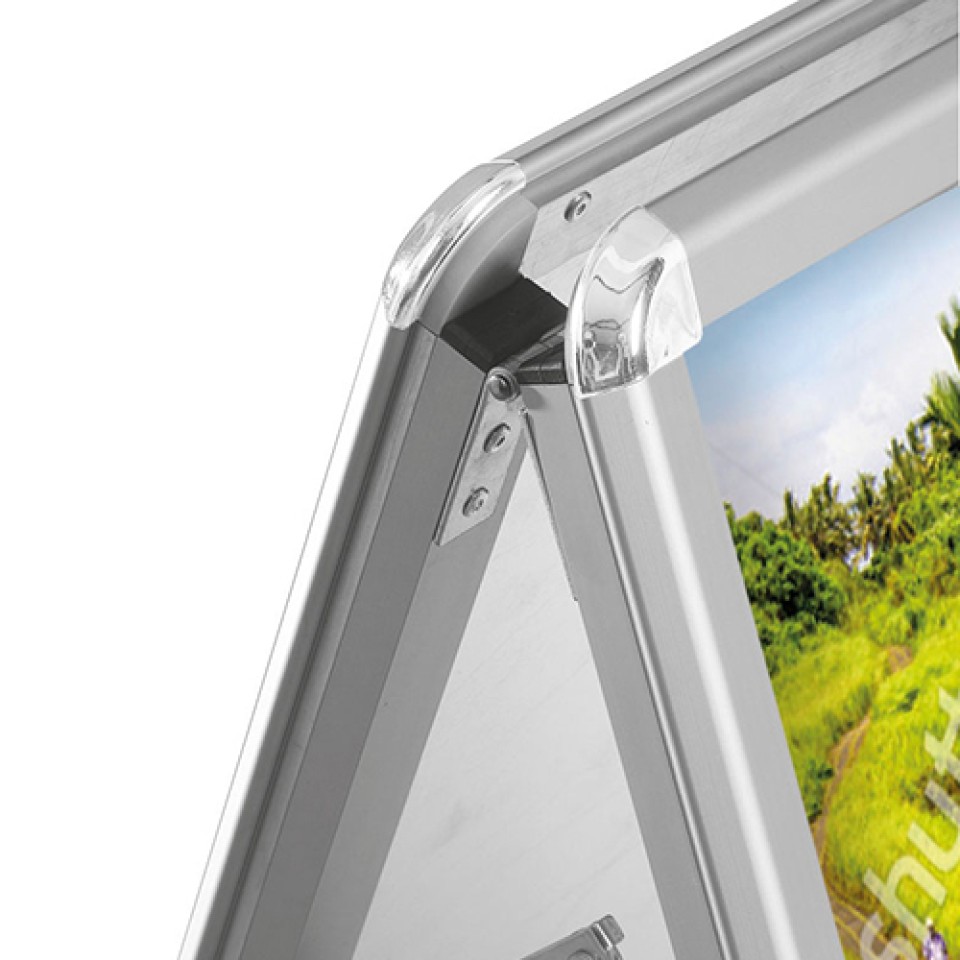 Maximize your impact with the A-Master Plus A-frame sign. It features a double-sided A1 main display plus an additional snapframe header for extra promotional space. Built with front-opening aluminium snapframes and a stable galvanised steel base, it's both durable and practical. Anti-glare, UV-stable covers protect your graphics. Designed for convenience, it folds flat for storage and is ideal for indoor or sheltered outdoor use.